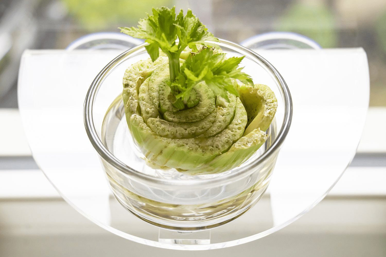 Method: Place celery base in water, change daily. Transplant to soil after 10 days.