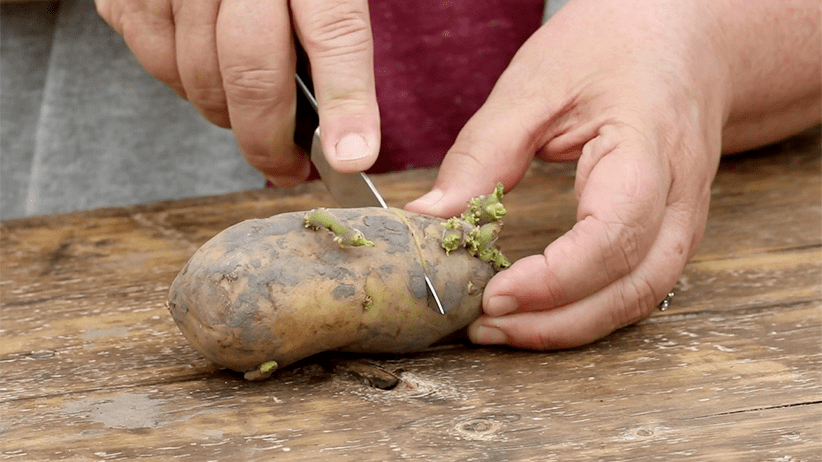 Method: Cut potato with eyes, plant 4 inches deep, harvest in 3-4 months.