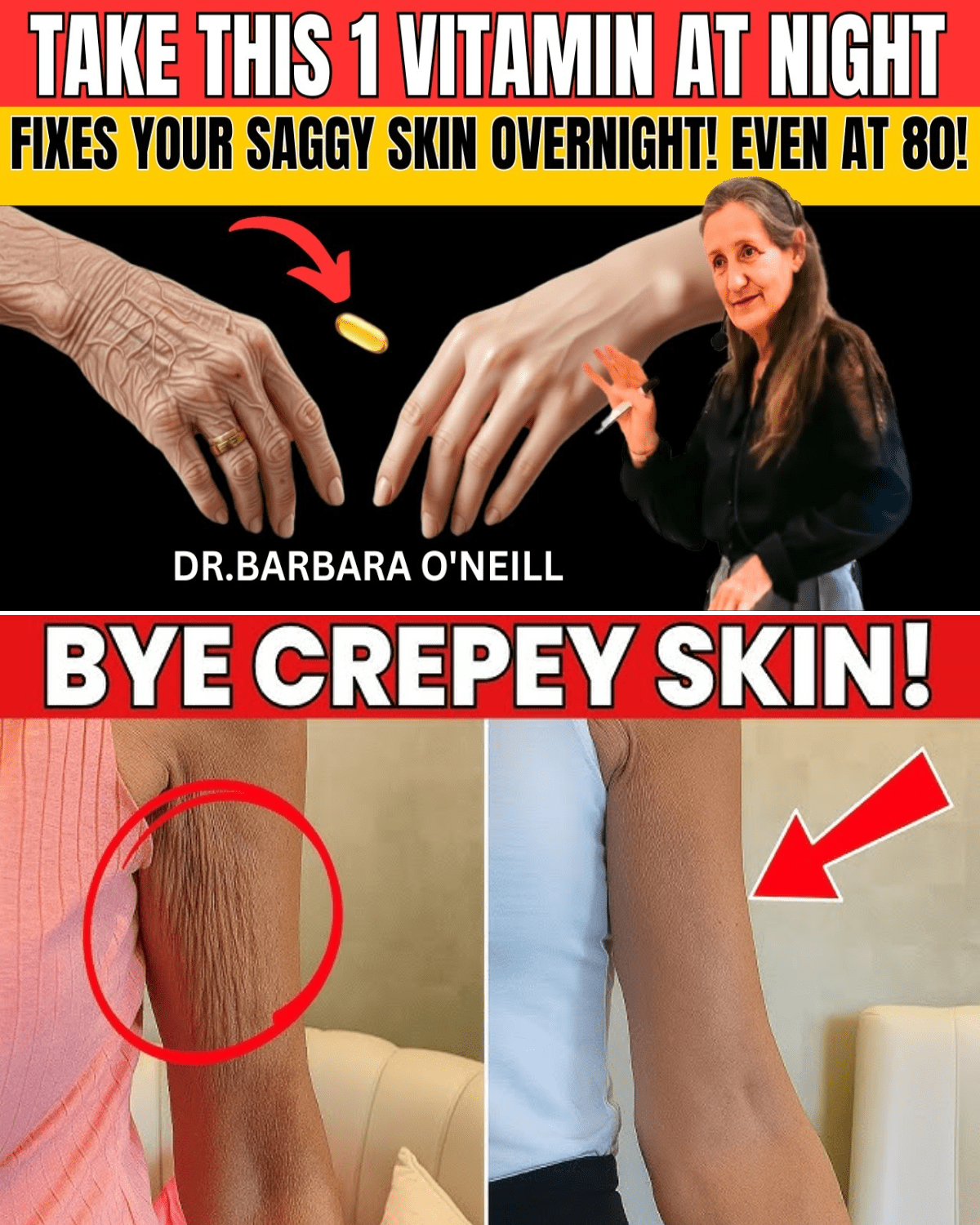 Goodbye Crepey Skin! Take These 2 Vitamins At Night To Fix Saggy Skin Overnight