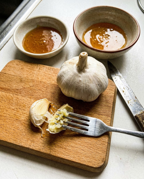 The honey or oil coats the raw garlic, protecting your stomach lining while allowing the active compounds to travel deeper into your digestive tract where they can get to work.
