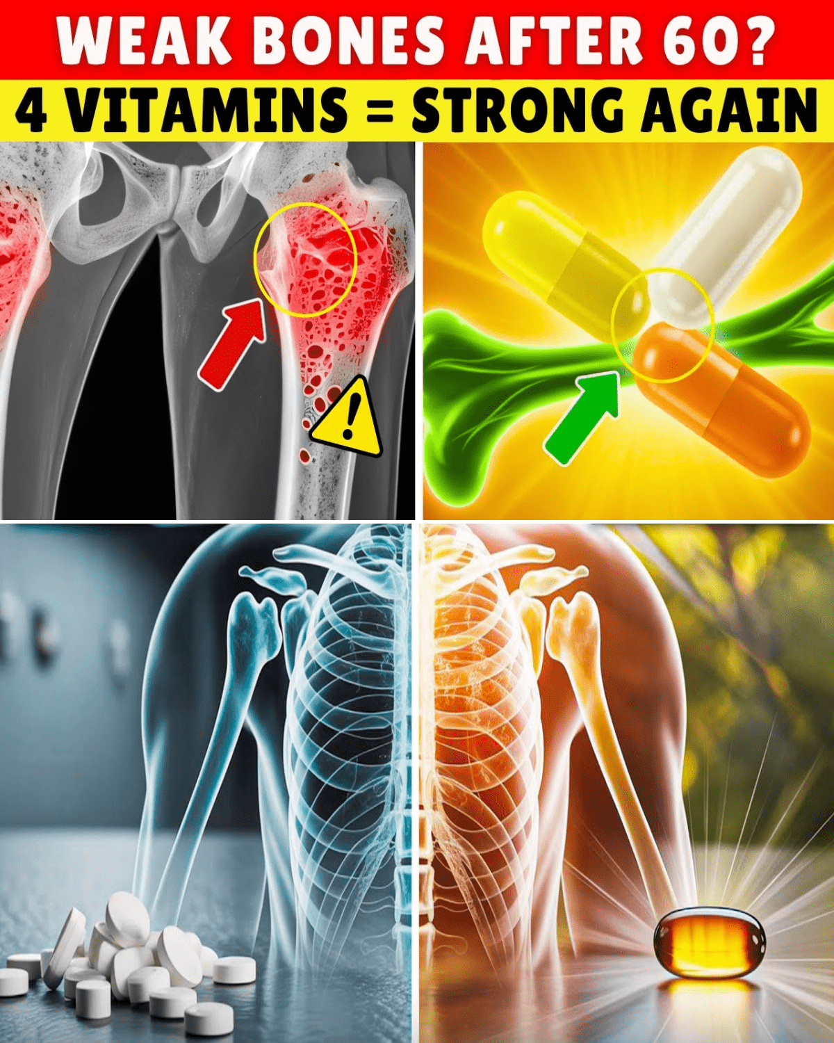 What if the calcium pill you’ve taken for years is almost useless without these four partners? Stick with me — because in the next few minutes I’m revealing the exact vitamins thousands of seniors are now using to rebuild bone density, erase morning stiffness, and reclaim the active life they thought was gone forever.