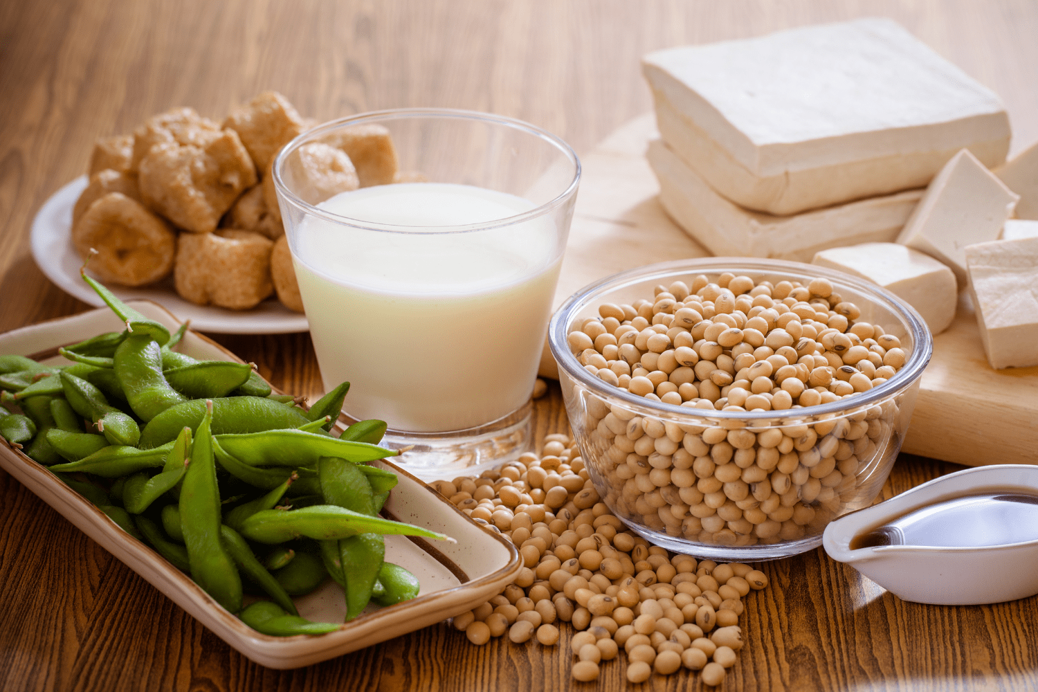 Tofu, natto, and edamame provide plant-based protein. Protein supports muscle maintenance, which matters for aging strength and independence.